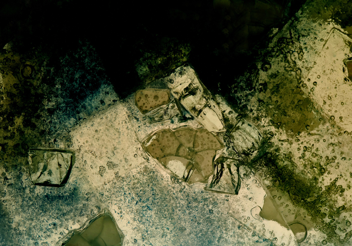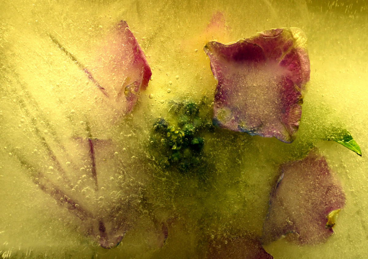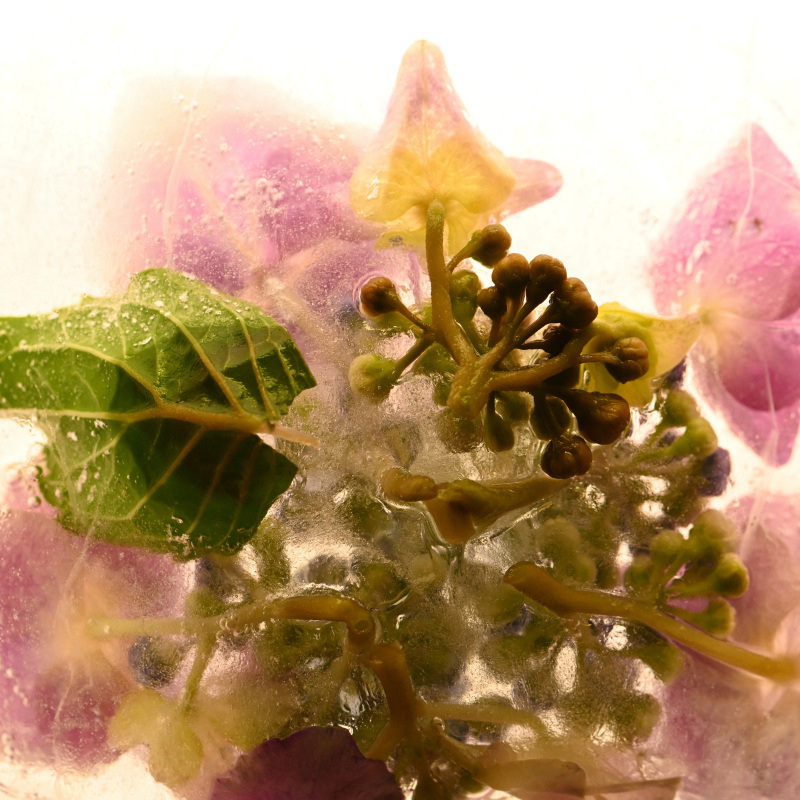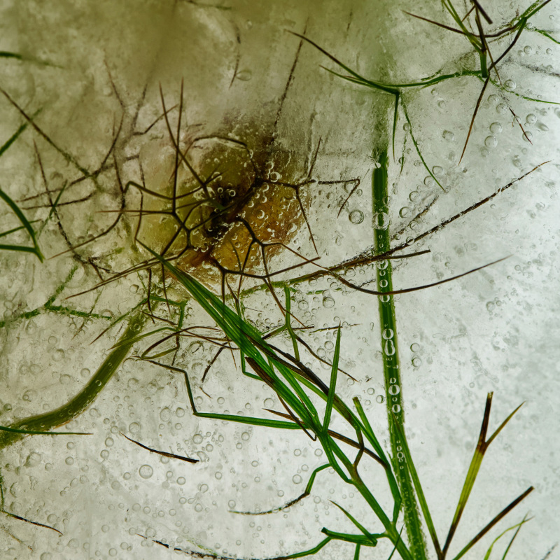 Von Eis umhüllte Objekte zeigen interessante Strukturen und Blasen. Anfangs fast milchig, entstehen während des Tauvorgangs weitere Formen und Risse. Wir erkennen sie oft nicht und doch zeigen sie wahre Ausschnitte von Dingen, die uns unrealistisch erscheinen und die unsere Phantasie anregen.